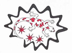 Im vorliegenden Beispiel ist der Hüter des Ortes ein Feuersalamander. Ihm wird symbolisch die Unverletzbarkeit durch Feuer zugeschrieben und somit steht er für den Gerechten, welcher sich