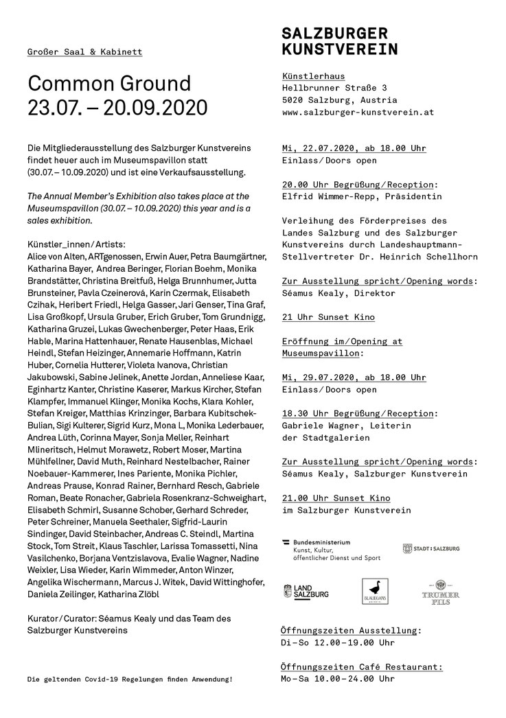 "Common Ground" Salzburger Kunstverein Ausstellungsbeteiligung vom 23.7. bis 20.9.2020